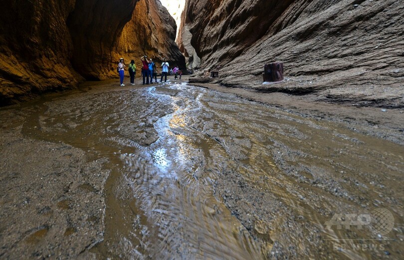 山肌は赤茶色の岩石で、雨風が残した彫刻のようだ。奥深くひっそりした場所には小道があり、俗世間からかけ離れている。(c)CNS/JCM/AFPBB News