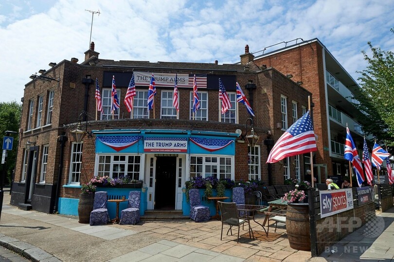【7月13日 AFP】英国でドナルド・トランプ(Donald Trump)米大統領の公式訪問に合わせて大規模なデモが展開される中、ロンドン西部のパブが店名を「トランプ・アームズ(The Trump Arms)」に臨時変更し、歓迎ムードを盛り上げようと奮闘している。