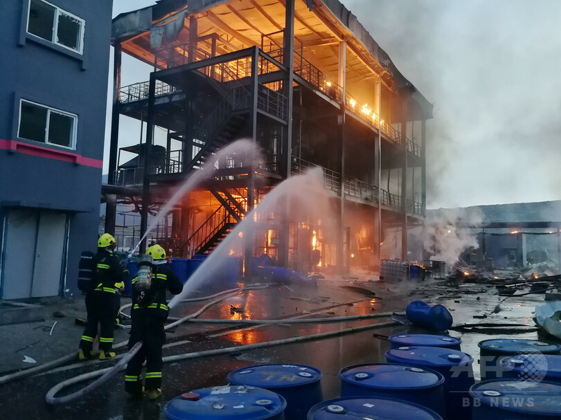 爆発現場付近の消火活動や救助活動は終了している。出火の原因を調査している。(c)CNS/JCM/AFPBB News