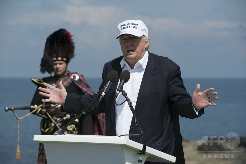 【7月16日 AFP】ドナルド・トランプ(Donald Trump)米大統領は13日、英国で2016年6月23日に行われた欧州連合(EU)離脱(ブレグジット、Brexit)の是非を問う国民投票の前日に、スコットランド南西ターンベリー(Turnberry)にある自身所有のゴルフ場で、その結果を正確に予測していたと語った。だが実際には、同氏がゴルフ場に到着したのは翌24日のことで、このときに離脱派の勝利を評価する発言をしていた。