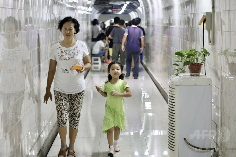 【7月18日 CNS】高温が続く中国・江蘇省(Jiangsu)南京市(Nanjing)では16日、市民は南京の鶏鳴寺(Jiming Temple)そばの防空壕(ごう)の中で涼を取っていた。(c)CNS/JCM/AFPBB News