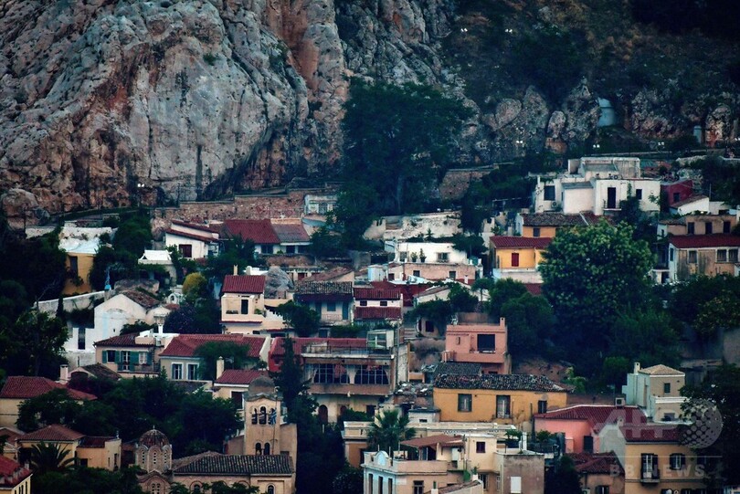 アクロポリス麓にたたずむ「エーゲ海の島」、狭い路地にしっくいの家々