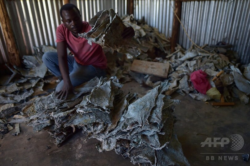 【7月20日 AFP】ケニア西部にある一風変わった皮なめし工場の床を埋め尽くすのは魚。その生臭い魚の山を前にナイフを研ぐ女性たち。