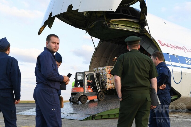 ロシア国防省によると、40トンを超える医療物資と人道支援物資を載せた同国の大型輸送機「アントノフ124(Antonov-124)」が仏中部シャトールー(Chateauroux)を21日早朝に出発し、シリア沿岸のフメイミム(Hmeimim)にあるロシア軍基地に到着した。