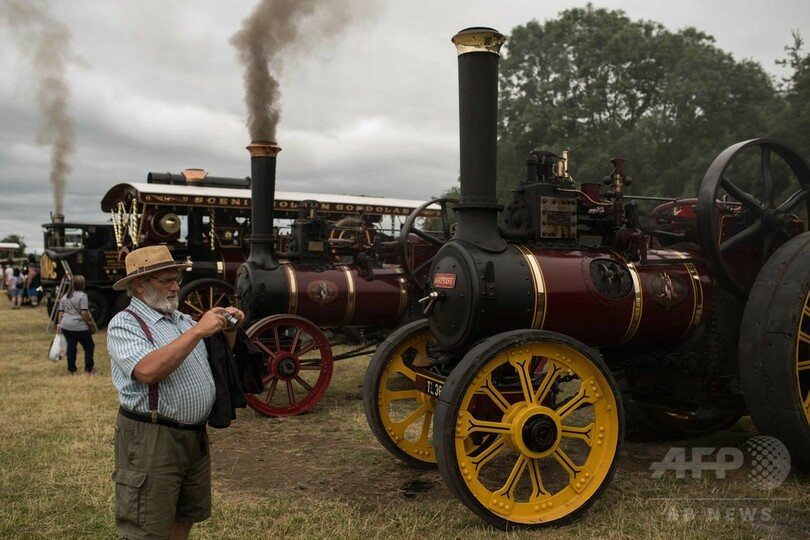 1965年から続くこの展覧会では、ビンテージの蒸気自動車やトラクター、ヨークシャー地方の農業や運送業で使用されていた蒸気機関が展示されており、来場者は同地方における農業の歴史を振り返ることができる。開催は22日まで。(c)AFP