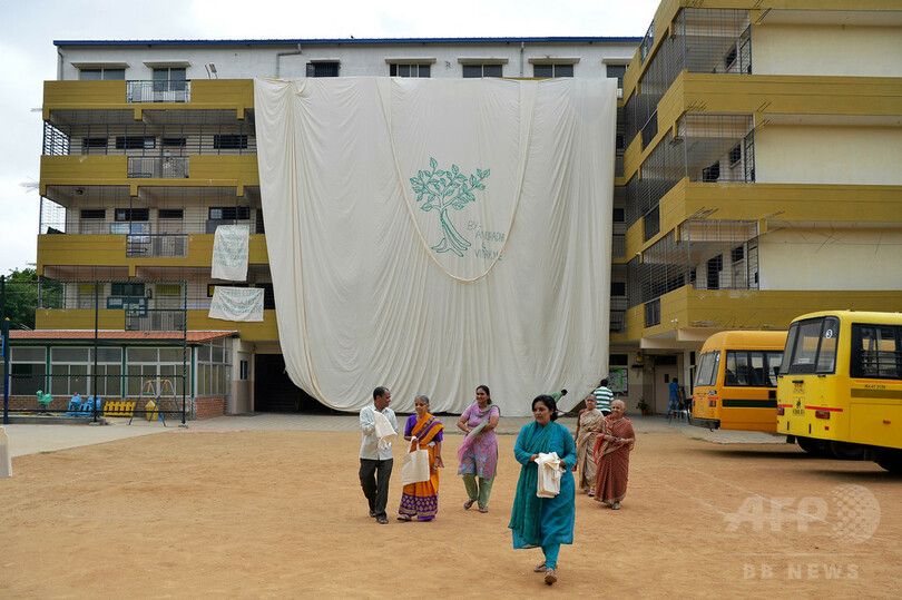 【7月24日 AFP】インド南部ベンガルール(Bengaluru、旧称バンガロール)で22日、ギネス世界記録(Guinness World Record)を目指し、約650平方メートルの巨大な綿のバッグが建物の壁面に垂らされた。