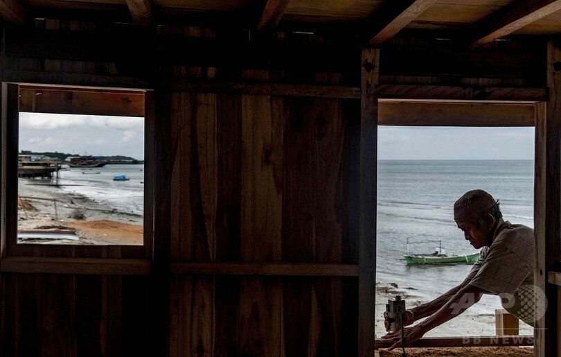 【7月28日 AFP】照りつける熱帯の太陽の下、インドネシアの船大工らが近隣産の木材に金づち、きり、のみを振るい、2本マストの伝統的で複雑な帆船を造り上げていた。この国の島々の沖を数世紀にわたって進んできたような船だ。
