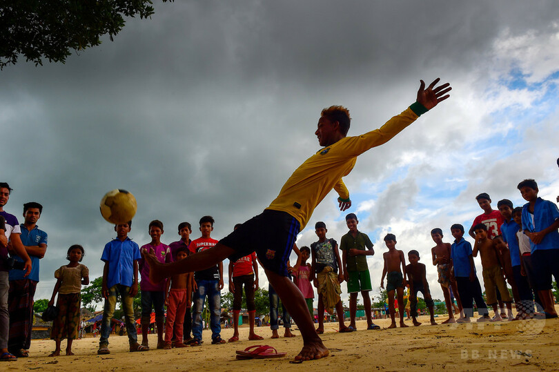 【7月29日 AFP】サッカーW杯は幕を閉じたが、世界最大規模の難民キャンプではいまだ、ゲームへの情熱が燃え続けている。ミャンマーからの避難を強いられた100万人近くのイスラム系少数民族ロヒンギャ(Rohingya)が暮らすバングラデシュのキャンプでは、赤と緑のバングラデシュ国旗のとなりで、ブラジルとアルゼンチンの国旗がはためいている。