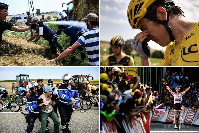 総合首位に立つチームスカイ(Team Sky)のゲラント・トーマス(Geraint Thomas、英国)は、この日も他選手のアタックにさらされることはなく、先頭から9分近く遅れてフィニッシュした。しかし、地元農家による抗議があったステージ序盤では、憲兵隊が使用した催涙ガスがトーマスを含めた複数の選手の目や口に入り、治療を余儀なくされる場面もあった。