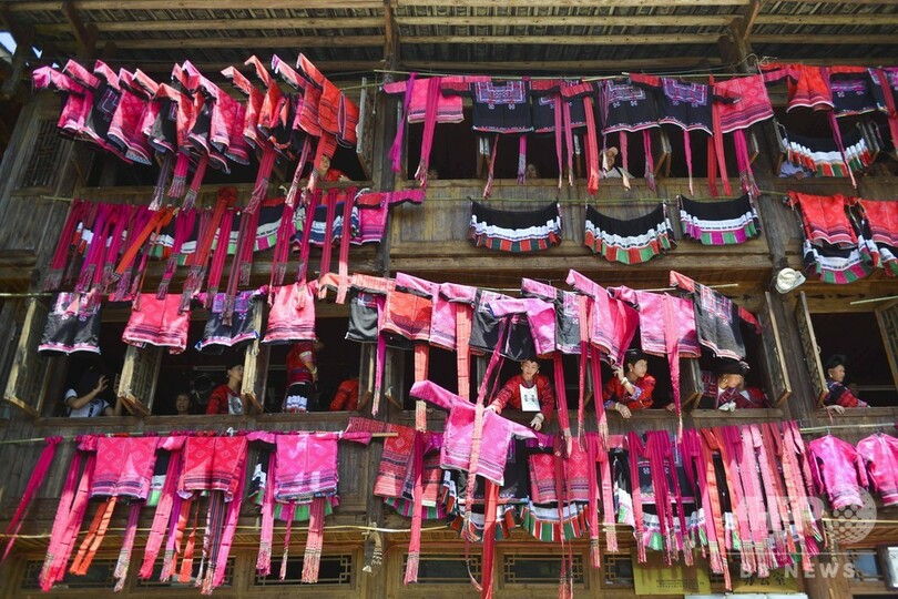 鮮やかな民族衣装が家々彩る 広西龍勝県伝統の祝日「晒衣節」