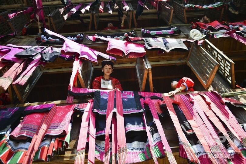 鮮やかな民族衣装が家々彩る 広西龍勝県伝統の祝日「晒衣節」