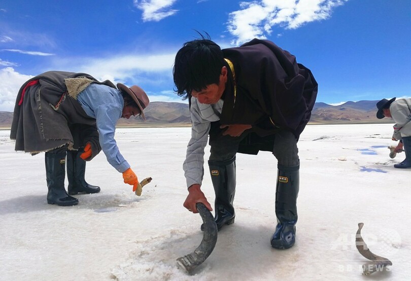 現地の羊の背に塩をのせる習俗は、『革吉駄塩習俗』として第5次チベット自治区文化遺産名録に記載されている。(c)CNS/JCM/AFPBB News