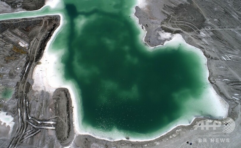 【7月30日 CNS】中国・青海省(Qinghai)西蒙古族蔵族自治州。さまざまな形態、深さの異なる塩湖が、ヒスイのごとく光り輝いていた。約6平方キロの「ヒスイ湖」の正式名称は、大柴旦湖(Dachaidan Lake)といい、大柴旦化工廠塩湖採掘隊の採掘エリアだった場所にある。長年の採掘で、「ヒスイ湖」ができた。湖畔にたたずむと、鏡のような湖面に藍色の空と白雲、雪を抱いた山々が映り、仙境のようだった。(c)CNS/JCM/AFPBB News