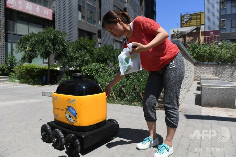 【8月5日 AFP】中国・北京郊外の閑静な住宅街を、黄色と黒色の小さな箱型ロボットが目的地に向かってのんびりゴロゴロ動いている。