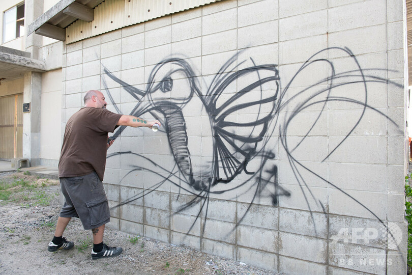 イベントを含む制作期間は、7月下旬の約1週間。アートとはいえ、イベント開始時には壁面を提供する建物は1軒しか決まっていなかったが、最終的には建物5棟、壁面にして10面と、消波ブロックをペイントした。実行委員会会長を務める加藤さんは、「街がかつてにぎわったように、観光客にもたくさん訪れてもらえるようにしたい」と話している。(c)AFPBB News/Yumiko Horie