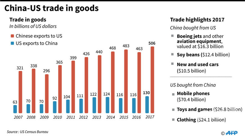【8月4日 AFP】米政府が中国との間で激化する貿易戦争をさらに拡大させる構えを見せたことを受け、中国は3日、米国からの輸入品600億ドル(約6兆7000億円)相当を対象に新たな報復関税を課す用意があると警告した。