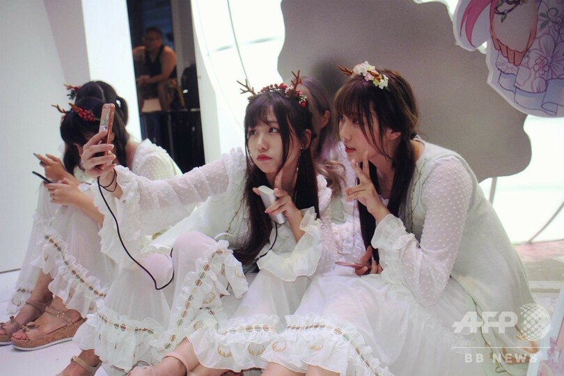中国内の大手配信サイトの斗魚(Douyu)や熊猫直播(Panda TV)など生放送プラットフォームでは、会場に参加できない人たちのためにライブ配信者らが現場の実況中継などを行っていた。(c)CNS/JCM/AFPBB News