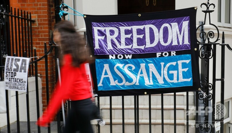 アサンジ氏は2012年、ロンドンのエクアドル大使館に政治的保護を求めて以降、同大使館に身を寄せている。(c)AFP