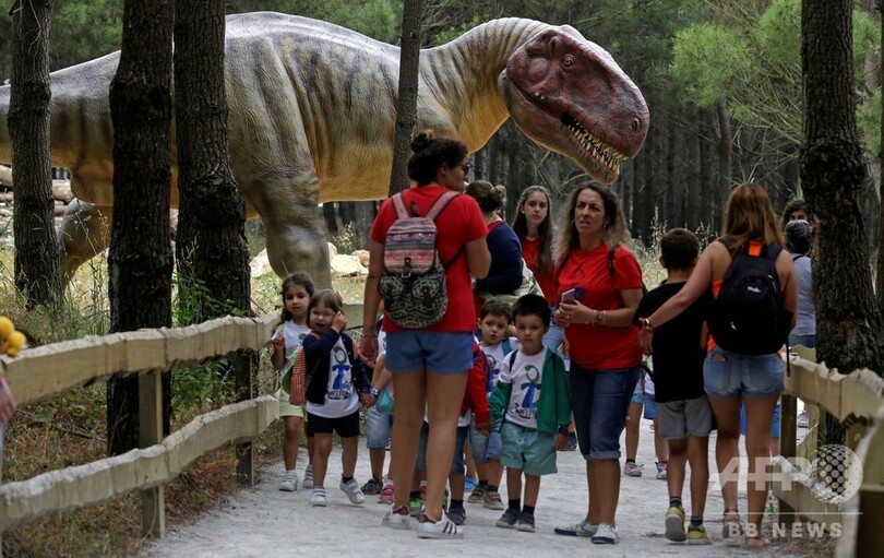 このティラノサウルス・レックスは、ポルトガルの首都リスボンから北へ車で約1時間の町、ロウリーニャ(Lourinha)近郊に新たにオープンした恐竜テーマパーク「ディノパーク(Dino Park)」の目玉だ。「10ヘクタール程度の園内の各所に、計70種類、120体の大型模型を設置している」と、同園の科学部門責任者シモン・マテウス(Simao Mateus)氏はAFPに語った。