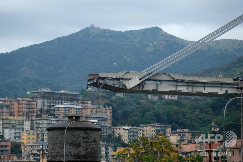 消防局によると、事故は14日正午(日本時間同日午後7時)ごろに発生。航空機から撮影された映像では、地元で「モランディ(Morandi)」と呼ばれる橋が200メートル以上にわたり完全に崩壊している様子が捉えられている。