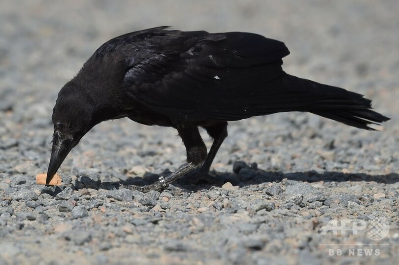 「カラス清掃員」勤務態度は良好? せっせと吸い殻拾い 仏