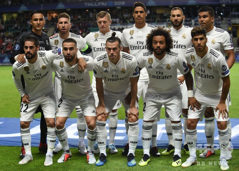 イングランド・プレミアリーグのチェルシー(Chelsea)から加入したばかりのティボー・クルトワ(Thibaut Courtois)もメンバーには入らず、先発のうち9人は、リバプール(Liverpool FC)に勝利した5月のチャンピオンズリーグ決勝と同じ顔ぶれが並んだ。(c)AFP/Manuel CABELLO DUJO