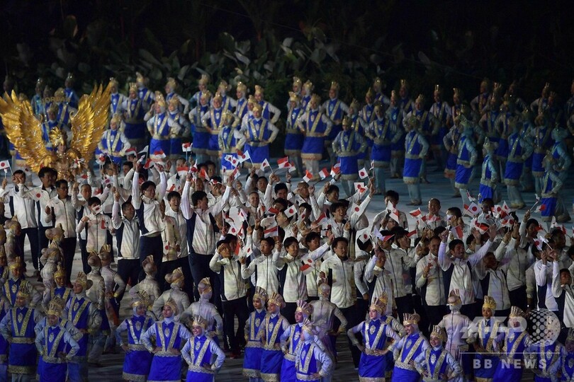 開会式は、インドネシアのジョコ・ウィドド(Joko Widodo)大統領が市内でバイクのスタントを披露する映像からスタート。バイクにまたがった大統領が大歓声に迎えられてスタジアムに登場した後は、伝統衣装をまとった1500人がマスゲームを披露し、アフガニスタンを先頭に選手たちが入場行進を行った。