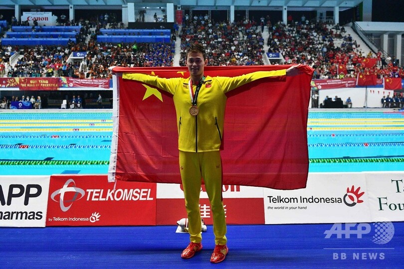 金メダルの孫楊怒り、競泳表彰式で中国国旗が落下 アジア大会
