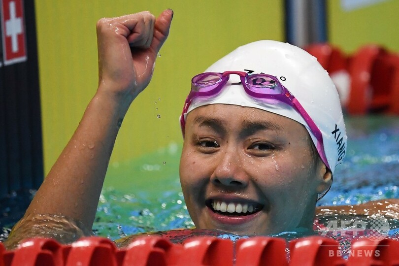 予選では「全然体が動かなかった」という池江だが、決勝では疲れに負けず大会新記録となる56秒30で優勝。2位の張雨霏(Zhang Yufei、チョウ・ウヒ、中国)に1秒以上の差をつけ、先日のパンパシフィック水泳選手権(Pan Pacific Swimming Championships 2018)に続くこの種目の金メダルを手にした。