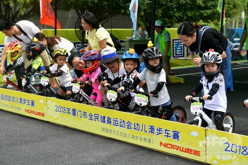 【8月22日 CNS】中国・福建省(Fujian)アモイ市(Xiamen)三圈模型科学体験基地(Sanquan Moxing)18、19の両日、幼児の二輪車大会が開催された。