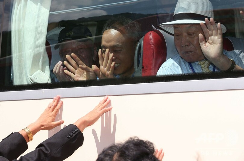 【8月22日 AFP】1950~53年の朝鮮戦争(Korean War)などによって生き別れとなり、約70年ぶりの再会を果たした離散家族が22日、再会行事を終え、最後の最後まで抱き合い、涙ながらに別れを告げた。