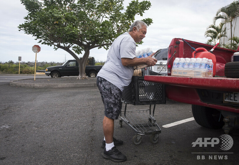 ハリケーンのハワイ上陸は珍しく、最後に大型ハリケーンが上陸したのはほぼ30年前のことだった。ハリケーンに備え、当局は被害が予想される郡の学校や官公庁を閉鎖。住民らは備蓄用の水や食料を求め店へと急いだ。デービッド・イゲ(David Ige)州知事は21日、救援活動強化のためハワイ島に非常事態を宣言した。(c)AFP