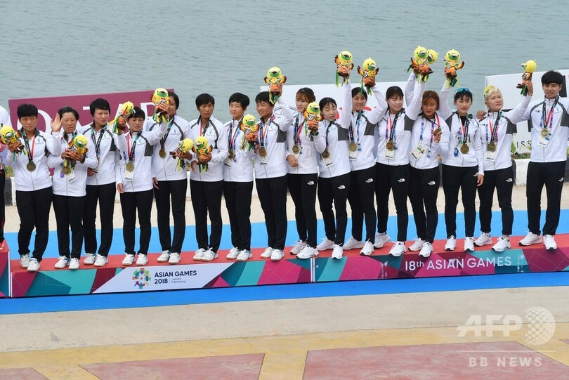 【8月26日 AFP】第18回アジア競技大会(18th Asian Games、Asiad)は25日、カヌー女子トラディショナルボートレース200メートルが行われ、韓国と北朝鮮の南北合同チームが銅メダルに輝いた。合同チームのメダル獲得は今大会初めて。