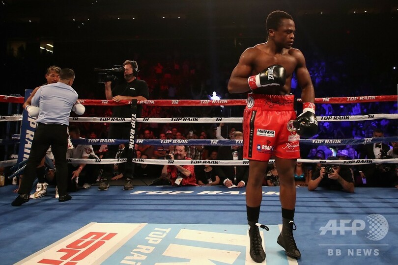 勝利したドグボエが戦績を20勝(14KO)0敗とした一方、37歳の大竹は31勝(14KO)3敗3分けに落とし、連勝も9で止まった。(c)AFP