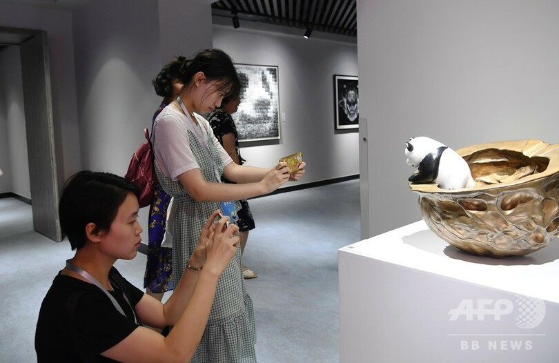 同センターは、収蔵するパンダの芸術品を展示している。パンダに関わる文化芸術創作や交流を進めるほか、パンダについての科学普及教育活動など、多機能の国際的な展示場だ。館内には油絵や彫刻、写真などの作品が展示され、「四川パンダ文化」の豊かな芸術性を紹介している。(c)CNS/JCM/AFPBB News