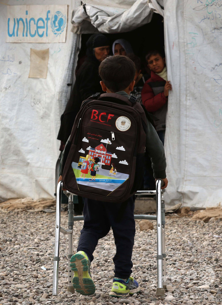 In 2016, UNICEF has helped to get more than 116,000 out of school children back into classrooms, to install pre-fab school structures benefitting 42,000 displaced children, and to distribute school supplies and learning materials to more than 280,000 children. Iraq's second city, Mosul was recaptured in July after being taken in a lightning summer 2014 offensive by the Islamic State group. / AFP PHOTO / SAFIN HAMED