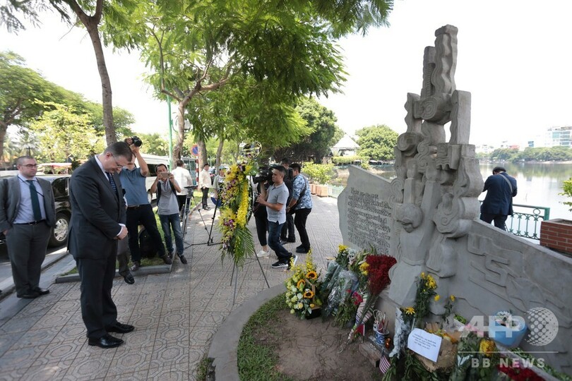 【8月28日 AFP】ベトナムの首都ハノイで27日、先週末に死去した米上院議員、ジョン・マケイン(John McCain)氏を追悼しようと、市民や米当局者らが市内にある同氏の記念碑に花を手向けた。同氏はベトナム戦争(Vietnam War)中に捕虜として収容された経験を持ちながらも、戦後はかつての敵である同国との関係修復に尽力した。