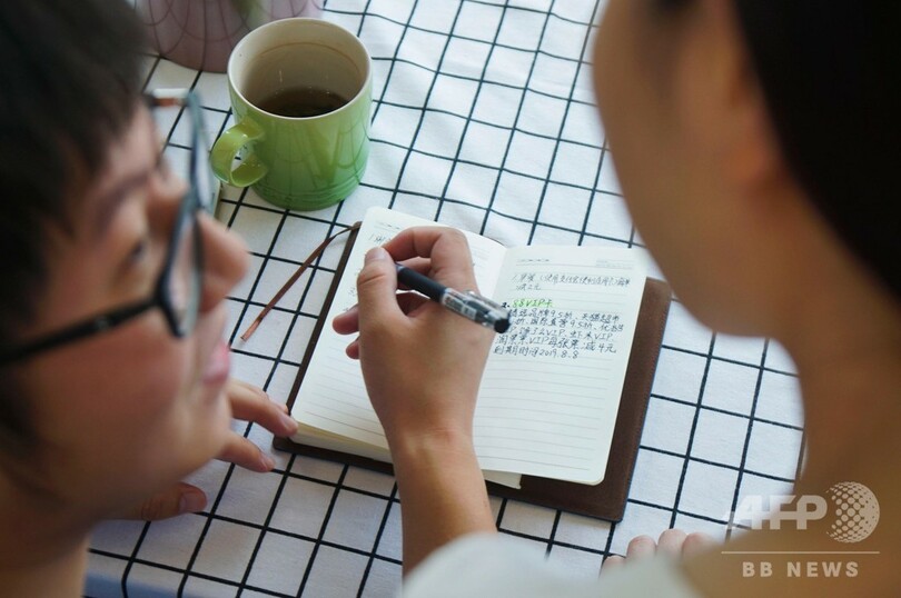 陸さんはさらに、各カードの最近のキャンペーン情報などが書かれたノートを持っていて、割引の詳細や使用条件、使用期間など、何かの情報があれば記入する習慣がついているという。自宅玄関の黒板にも、関連情報がびっしりと書かれていた。(c)CNS/JCM/AFPBB News
