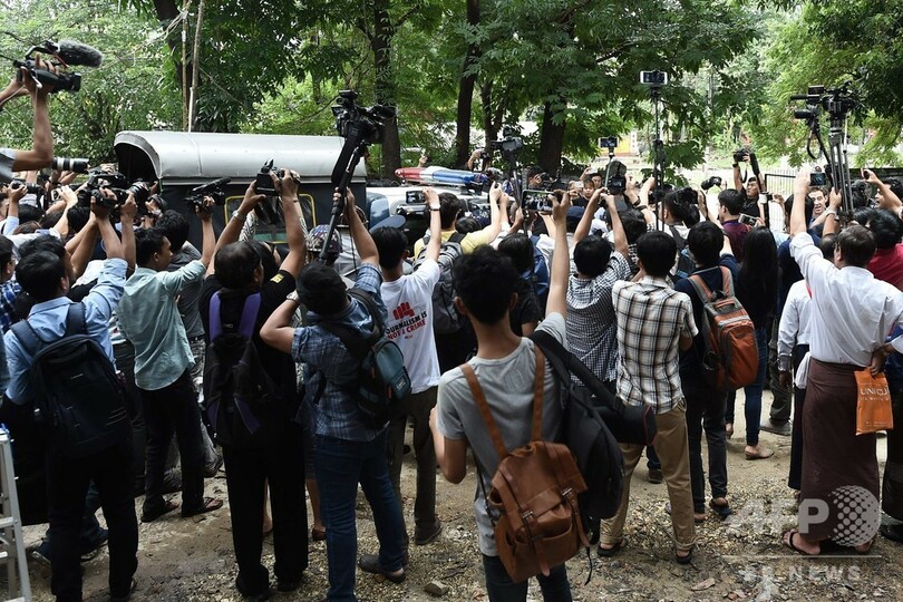 国際ジャーナリスト組織「国境なき記者団(Reporters Without Borders)」は、今回の「いかさまの裁判」とその判決を「ミャンマーの報道の自由にとって暗黒の日」と評した。(c)AFP