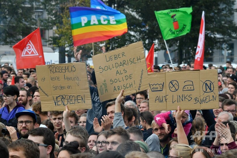 【9月4日 AFP】外国人を嫌悪する集団が人々に暴力をふるう騒動が起きたドイツ東部ケムニッツ(Chemnitz)で3日、人種差別に反対するコンサートが開かれ、数万人が足を運んだ。同日にはアンゲラ・メルケル(Angela Merkel)首相も国民に対し、極右が掲げる憎悪と分断のメッセージに立ち向かおうと呼び掛けた。