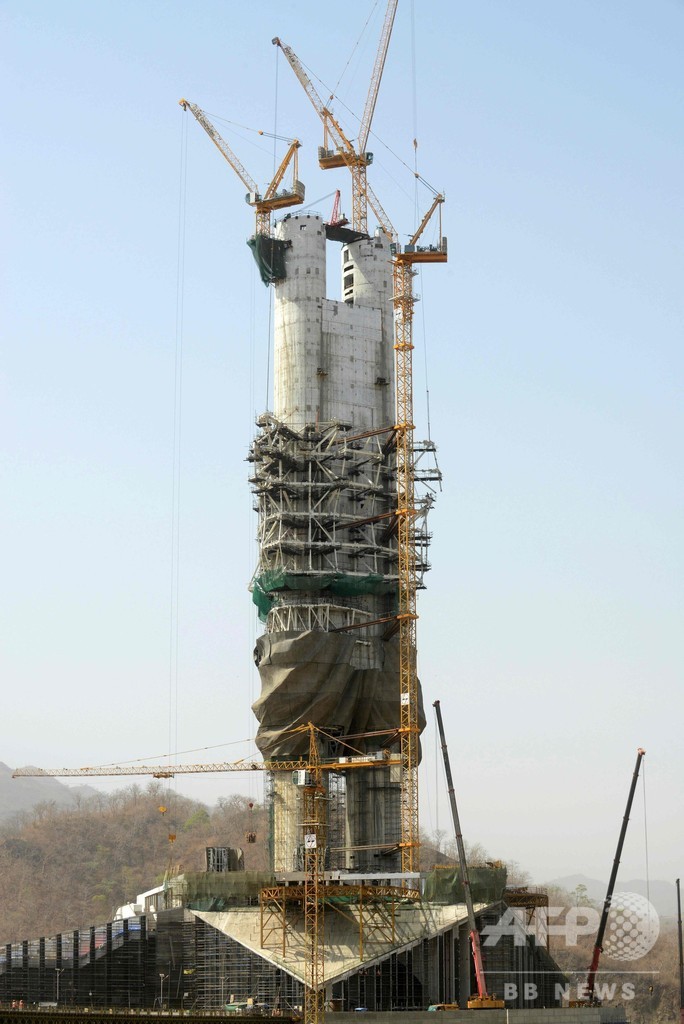 【9月4日 AFP】インド西部グジャラート(Gujarat)州で、高さ182メートルと世界一高い像になる見通しのインド独立の英雄像が、来月末の落成に向けて急ピッチで建造が進められている。だが、この像は完成して間もなく、同じインドのムンバイ(Mumbai)に建立中のヒンズー教の英雄像(212メートル)にトップの座を明け渡すことになりそうだ。