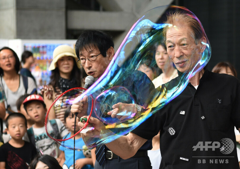 「シャボン玉アーティスト」こと杉山弘之(Hiroyuki Sugiyama)さん(71)、弟の輝行(Teruyuki Sugiyama)さん(68)兄弟が現れる場所では、誰もがシャボン玉の魔法にかかってしまう。