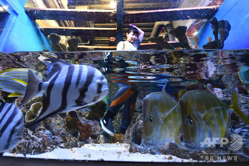 【9月7日 AFPBB News】子どもたちが歓声を上げ手を振って眺める水槽には魚ではなくウェットスーツを着込んだ男女の人間。東京・池袋の「サンシャイン水族館(Sunshine Aquarium)」で5日、「水槽ピカピカ大作戦」が行われ、水槽の清掃が一般公開された。