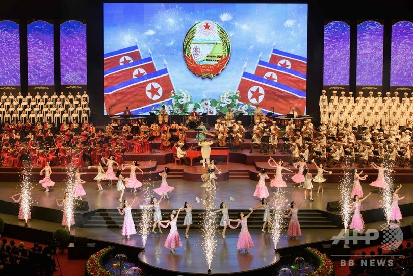【9月9日 AFP】北朝鮮で8日、建国70周年の祝賀行事が始まった。同日開かれたコンサート中の映像では、同国が誇る業績が披露される一方、ミサイルが誇示されることはなかった。