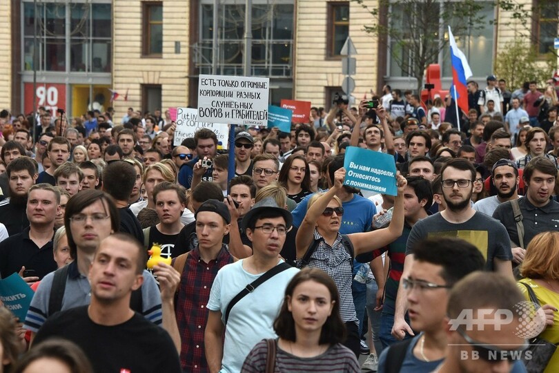 【9月10日 AFP】ロシアで統一地方選挙が行われた9日、国民の反発が強い年金改革案に対する抗議デモが全国各地で行われ、デモの参加者800人以上が逮捕される事態に発展した。