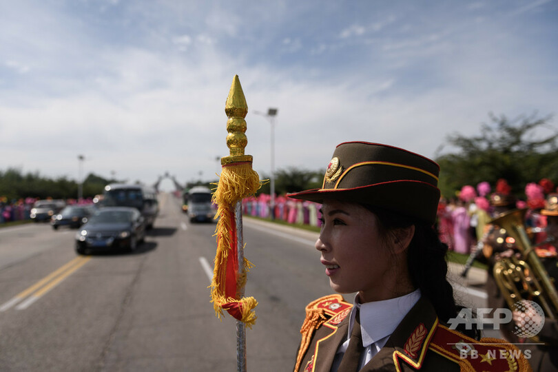 【9月12日 AFP】北朝鮮の平壌郊外の祖国統一三大憲章記念塔(Three Charters Monument)で11日、「平和、繁栄、統一のための国際的行進」が行われ、国内の様々な友好団体が参加した。伝統的な衣装を着た女性たちや朝鮮人民軍のマーチングバンドなども集まり、建国70周年を祝った。(c)AFP