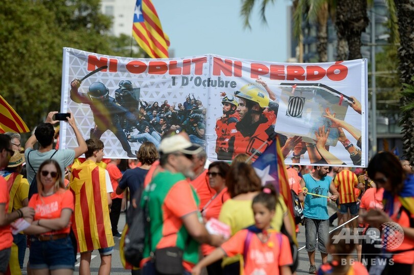 独自の言語を持ち経済的に豊かなカタルーニャ自治州では、昨年10月1日の住民投票が違法との司法判断が下されたのち、同月27日に自治州議会が一方的に独立分離を宣言したが、最終的に全てが無に帰す結果となった。この状況を受けて今年のデモは同自治州の強さが試される重要なイベントと位置付けられた。
