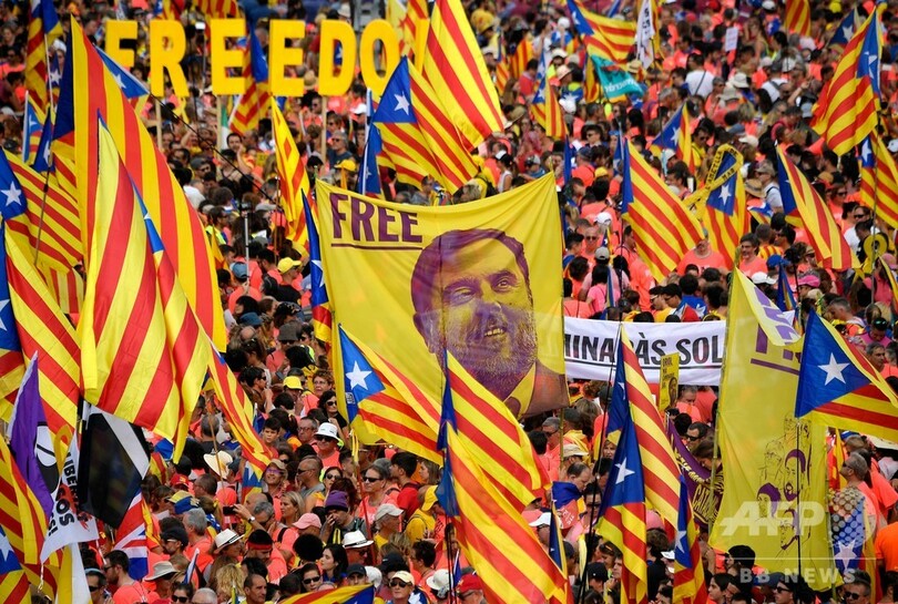 独自の言語を持ち経済的に豊かなカタルーニャ自治州では、昨年10月1日の住民投票が違法との司法判断が下されたのち、同月27日に自治州議会が一方的に独立分離を宣言したが、最終的に全てが無に帰す結果となった。この状況を受けて今年のデモは同自治州の強さが試される重要なイベントと位置付けられた。