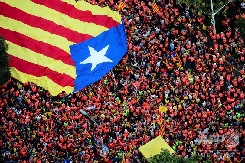 【9月12日 AFP】スペイン北東部カタルーニャ(Catalonia)自治州の州都バルセロナ(Barcelona)で11日、およそ100万人が同自治州の独立を求めるデモを行った。