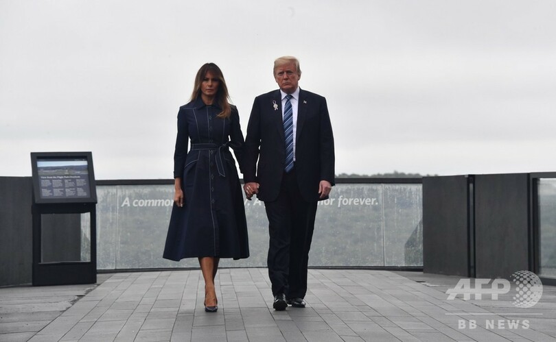 ハイジャックされた航空機が墜落したペンシルベニア州シャンクスビル(Shanksville)で追悼式に出席したドナルド・トランプ(Donald Trump)大統領は、ハイジャック犯らと戦った「英雄たち」をたたえた。